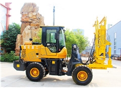 装载机式护栏打桩机是恒旺集团根据市场需求和自身技术成熟的情况下面向客户需求而研发的一款产品,是集装载、打桩、钻孔等功能为一体的新型产品。采用全新设计理念、精心研制整体功能,结构模块化兼顾的设计思想,全封闭各木式安装结构,更利于产品快速安装和转场,可广泛运用于公路、高速等路面护栏的桩孔钻进工作。